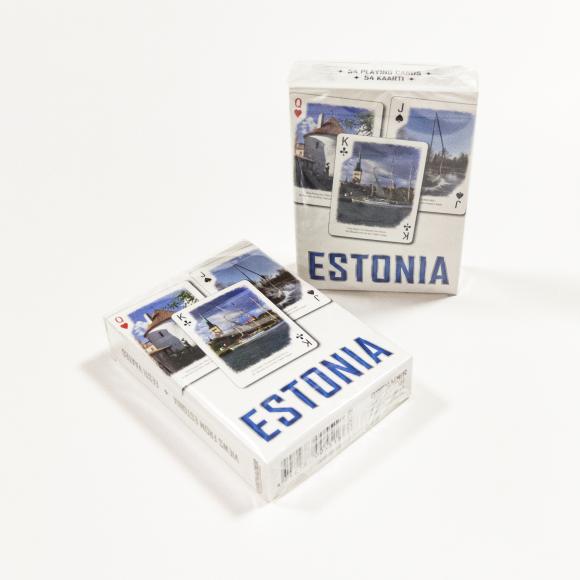 Mängukaardid, 54 kaarti pakis. Igal mängukaardil erinevad vaated Eesti linnadest ja asulatest.